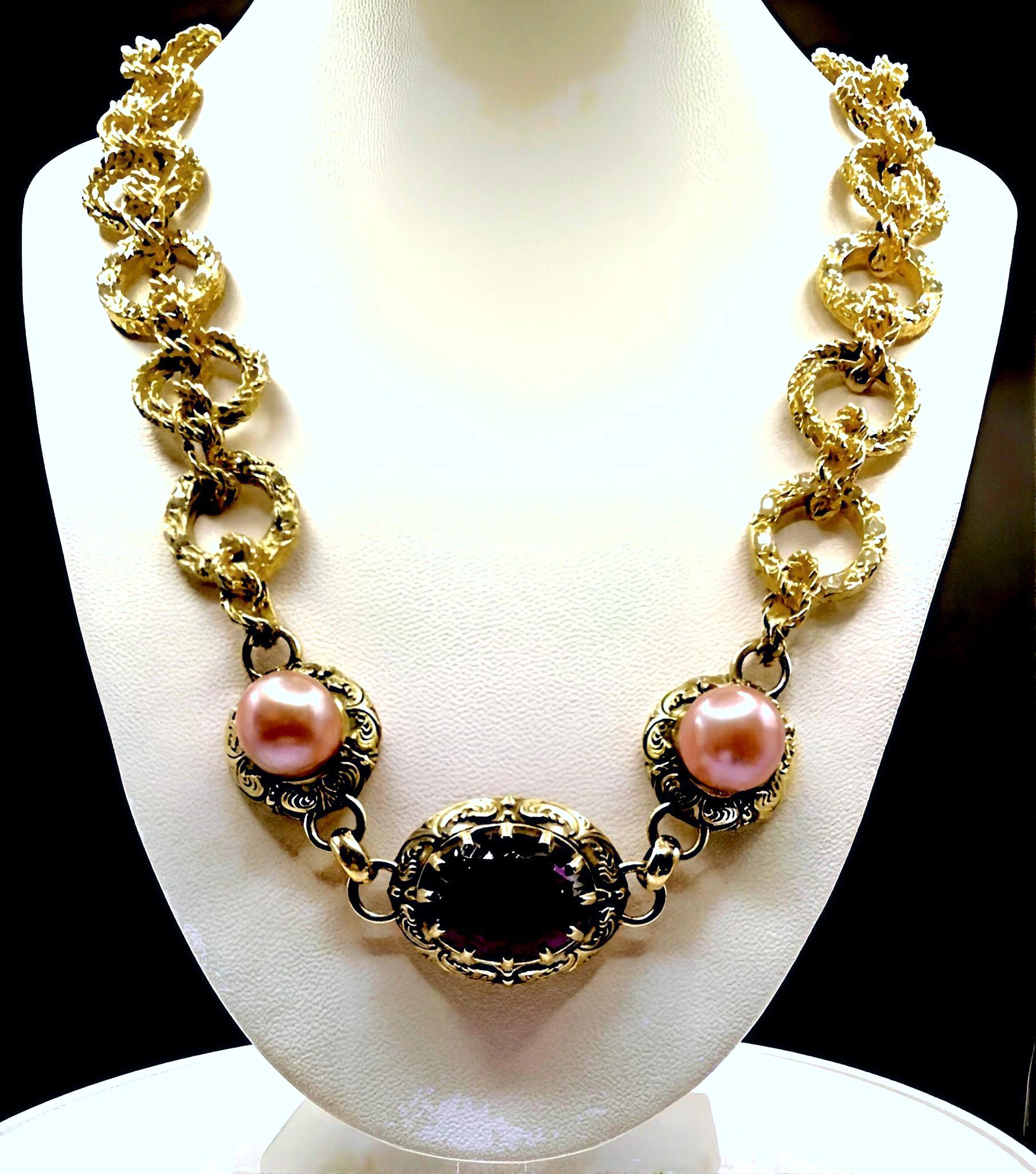 One-of-a-Kind Vintage Gold & Amethyst Statement Necklace
